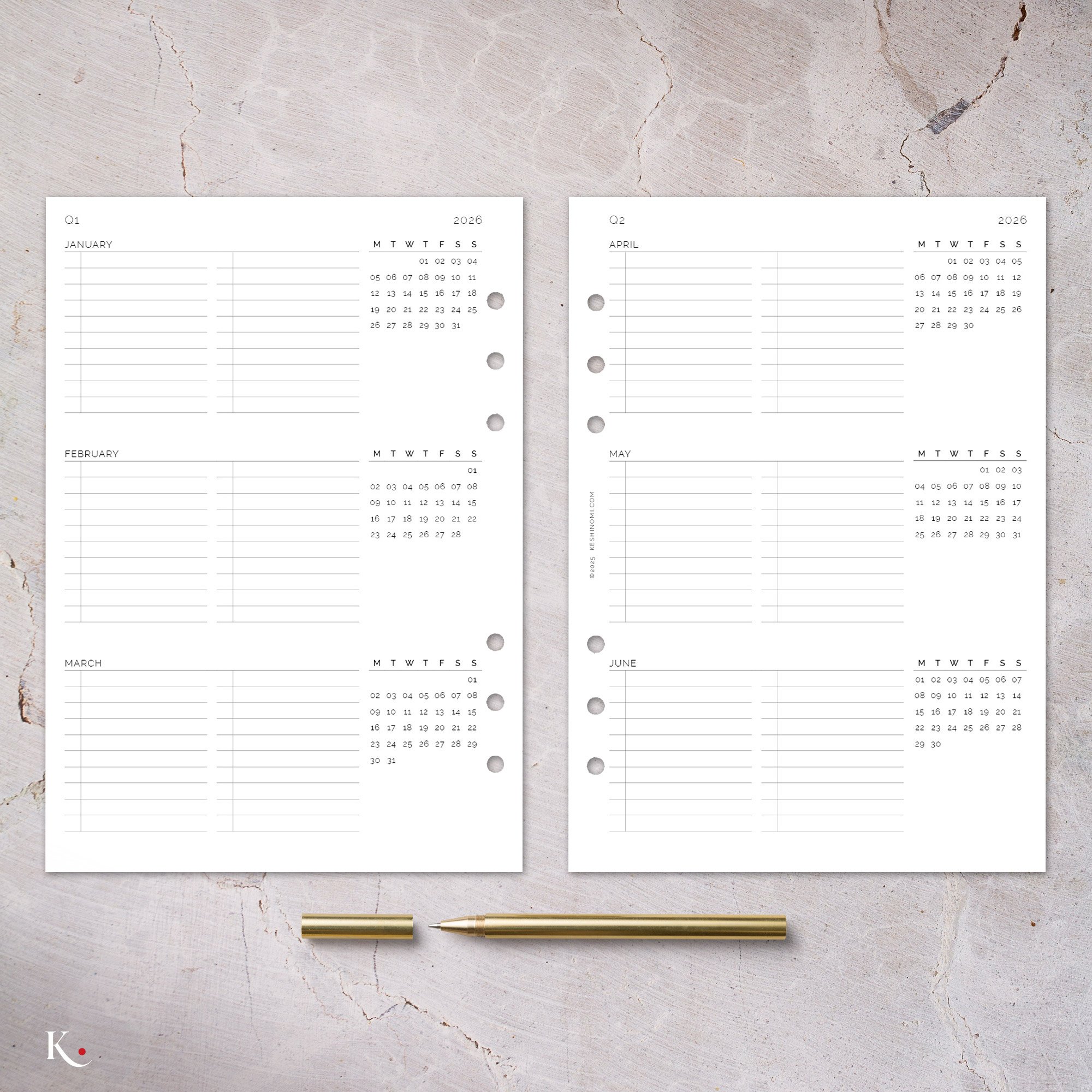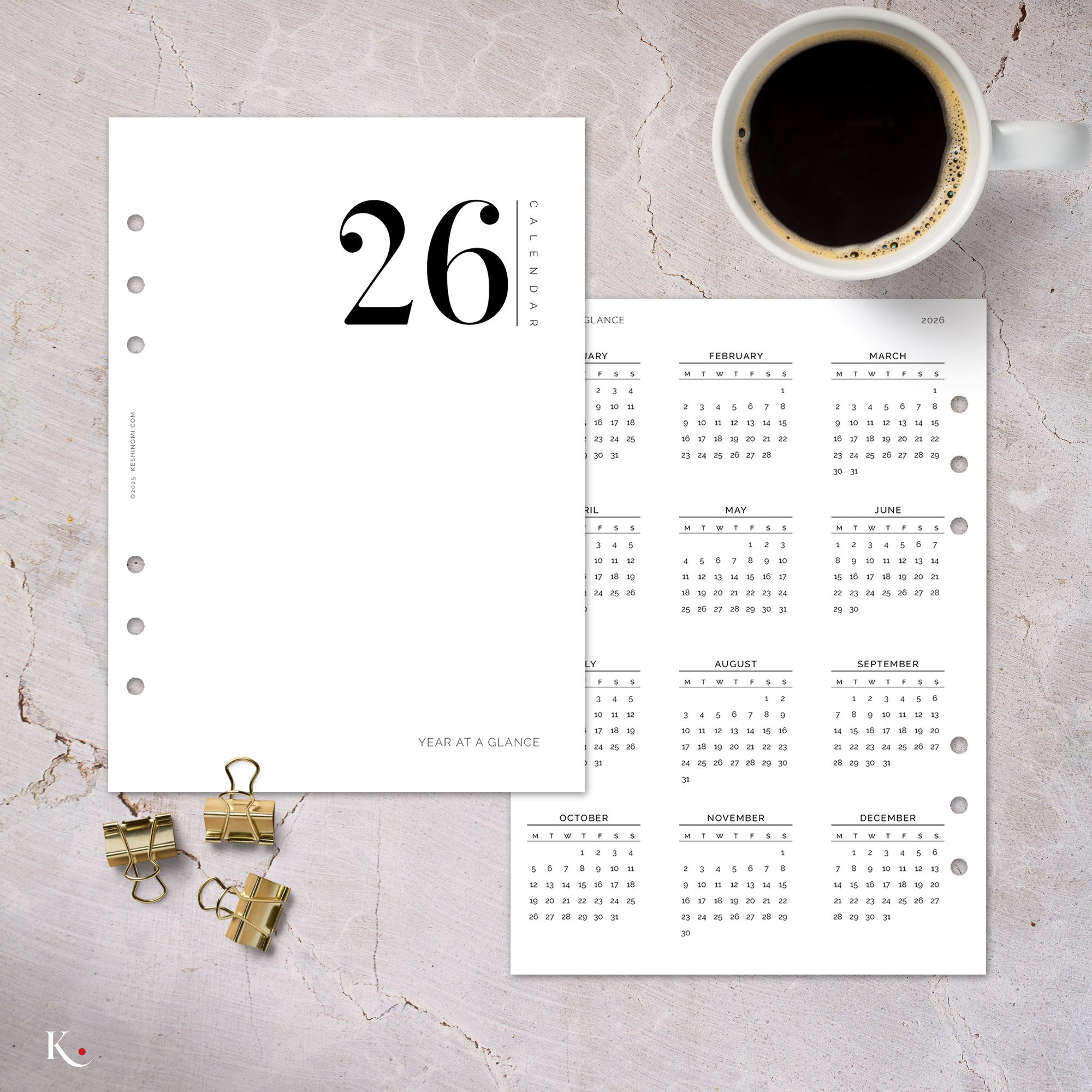 Welcome to the 2026 Keshinomi Essentials Collection. A curated suite of printable planner inserts designed to help you move through the year with clarity, intention, and calm control.