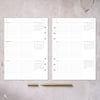 Designed for planners who think in quarters, this three-months-at-a-glance insert helps you break the year into manageable, intentional chunks. Each spread gives you a quarterly overview with space to capture goals, deadlines, key dates, and milestones, all in a clean, minimalist layout that invites clarity, not clutter.